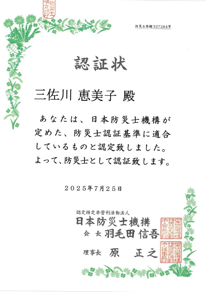 代表理事 三佐川恵美子(みさがわえみこ)(防災士)